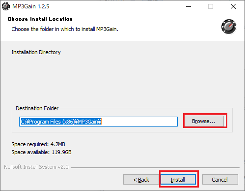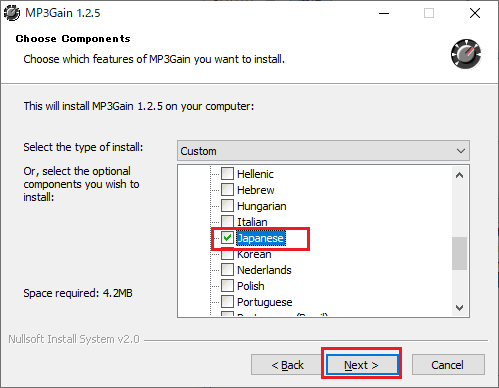なおウィザードは英語表記だが、MP3Gain本体は多言語に対応しているので、インストール完了後に表記を日本語に切り替えることが可能だ。