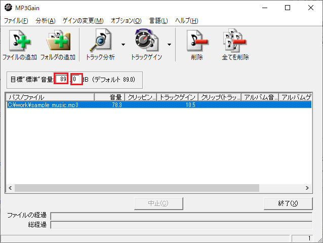 前項の考察より、複数の曲を連続再生する場合に音量を一定に保つには、物理的に音楽ファイルの音量調整をするよりなさそうだと判断した。
