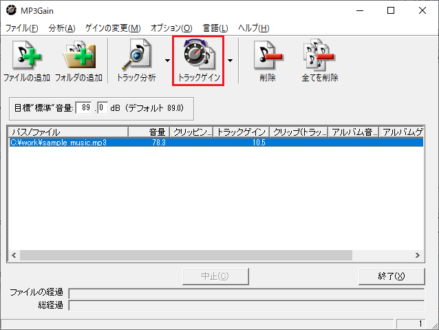 音量の設定が完了したら、最後に「トラックゲイン」ボタンを押下しよう。