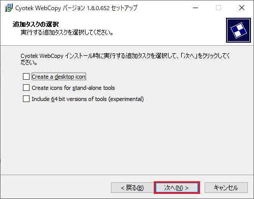 追加するタスクが特になければ、そのまま「次へ」ボタンを押下して構わない。