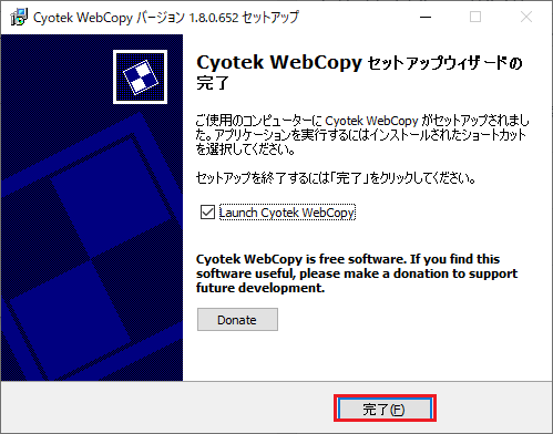 以上で「Cyotek WebCopy」のインストールは完了だ。