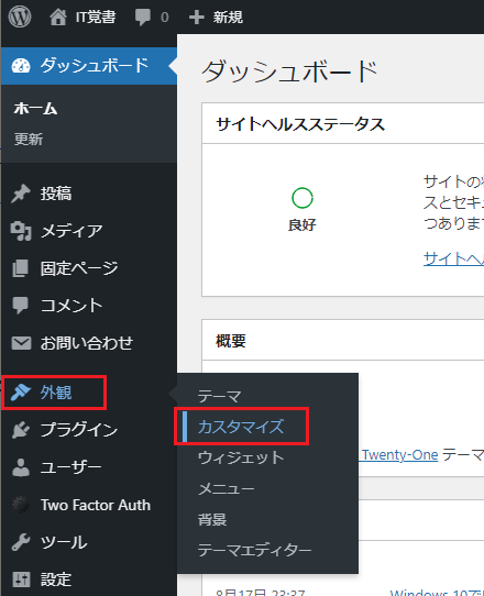 続いて、「外観」にカーソルを合わせ、右側に表示されたサブメニューから「カスタマイズ」を選択しよう。