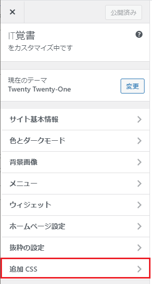 ここでは、一番下の「追加 CSS」を選択しよう。