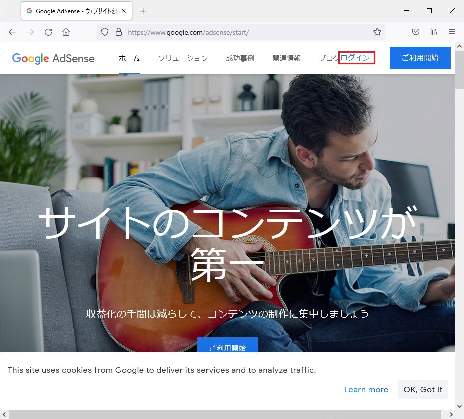 まずは、Googleアドセンスのコードを取得するため、Googleアドセンスのサイトにアクセスしよう。