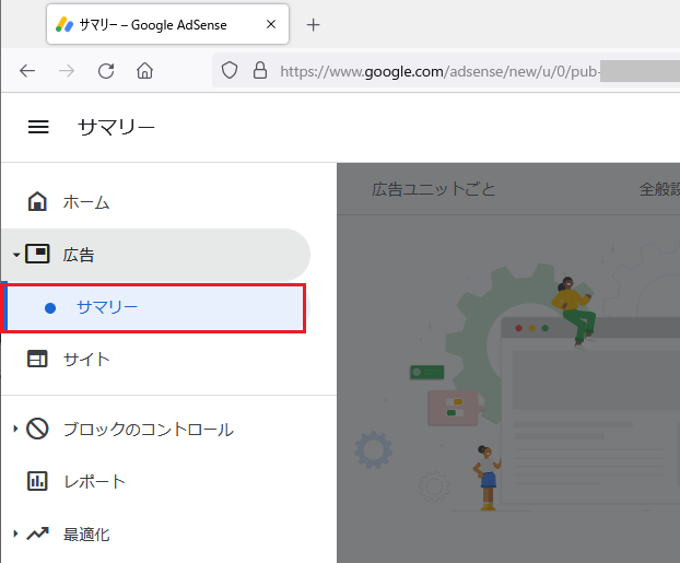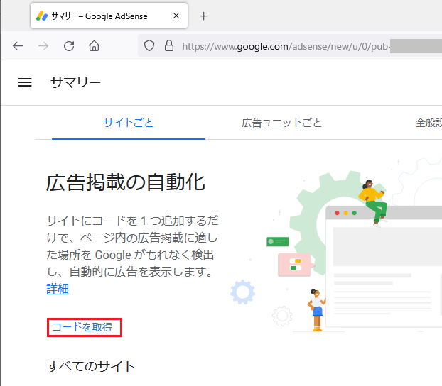 ちなみに、上図の青枠で囲った部分が、サイトの状況を確認した際に使用した「パブリッシャーID」となる。