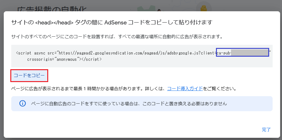 以上で、Googleアドセンスの修復に必要なコードのコピーは完了だ。