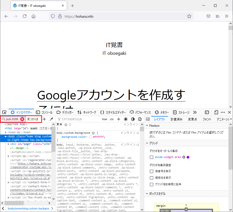 トラッキングIDを検索したのと同じように、Googleアドセンスの「パブリッシャーID」を検索しよう。
