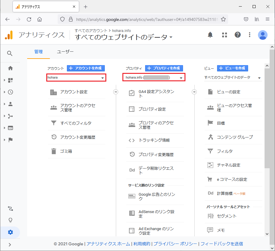 ここでは、サイト管理用の「アカウント」と「プロパティ」を選択しよう。