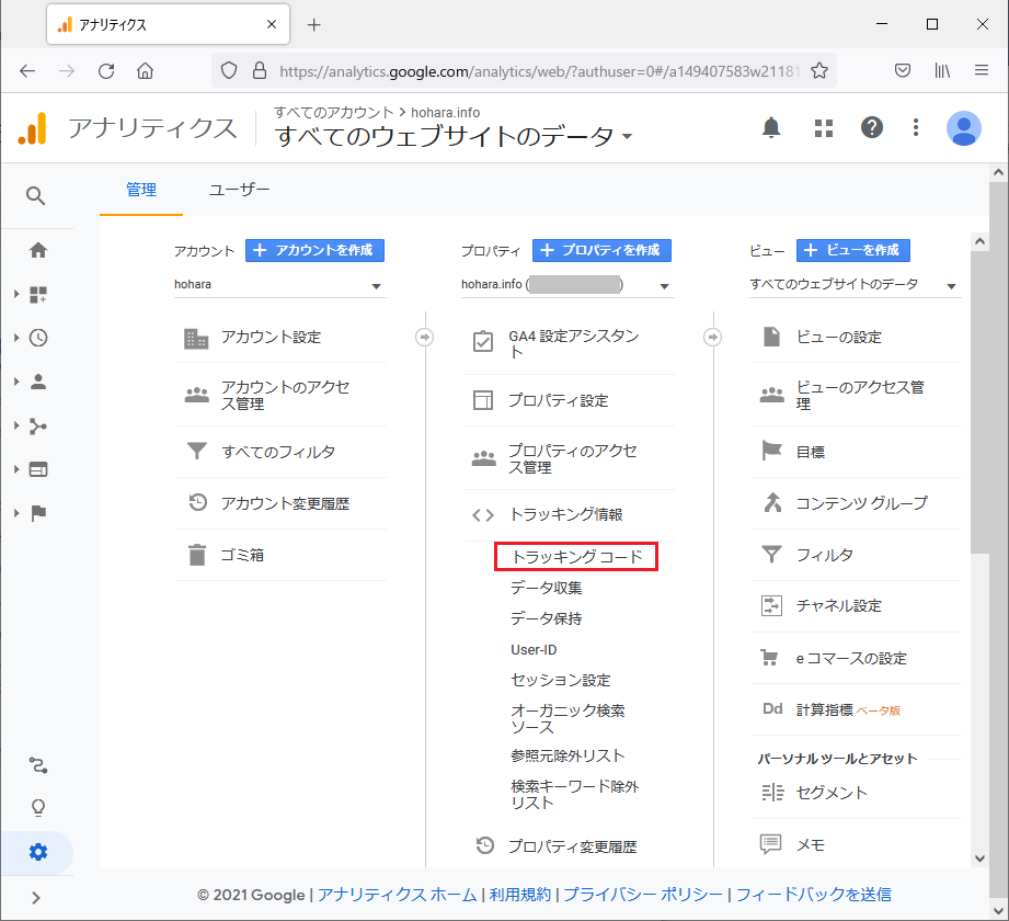 まずは、Googleアナリティクス用のコードを取得しよう。
