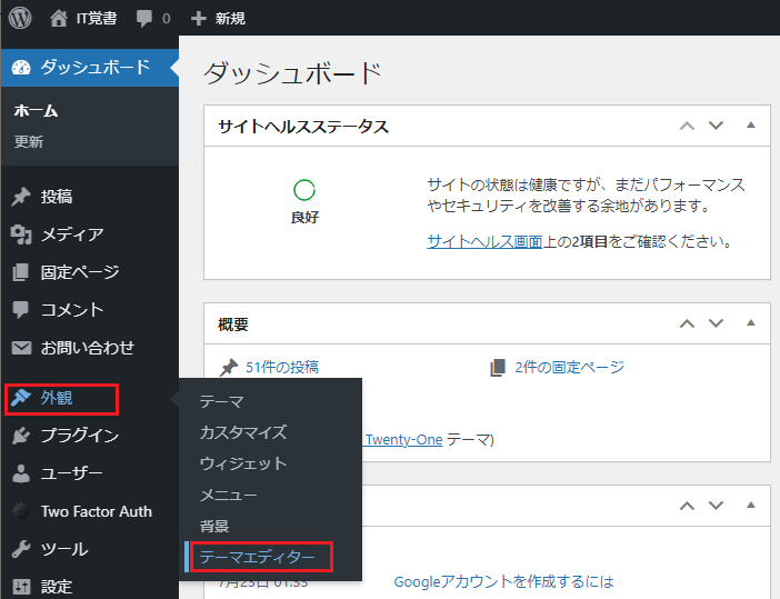なお、これはWordPressのテーマとして「Twenty Twenty-One」を利用している場合の例となる。