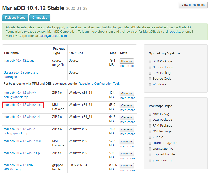 MariaDBのモジュールは、以下の公式サイトから入手可能だ。