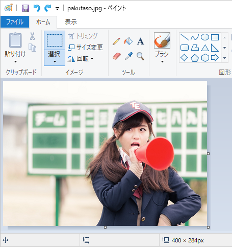 ペイントが起動したら、ドラッグ&ドロップ等で対象の画像をペイント上で開こう。