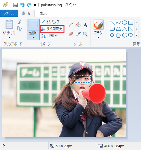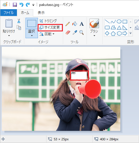 ペイントで画像にモザイクをかけるには