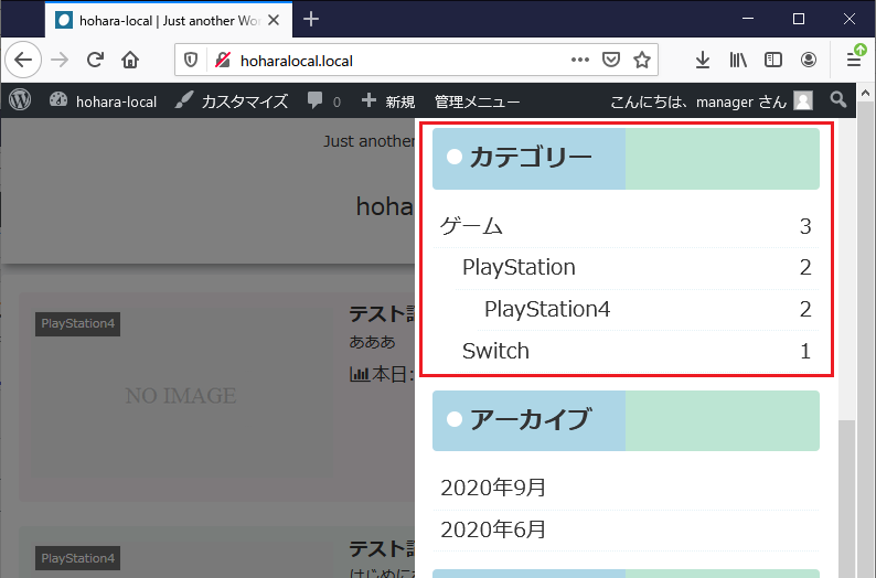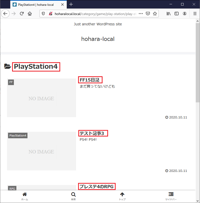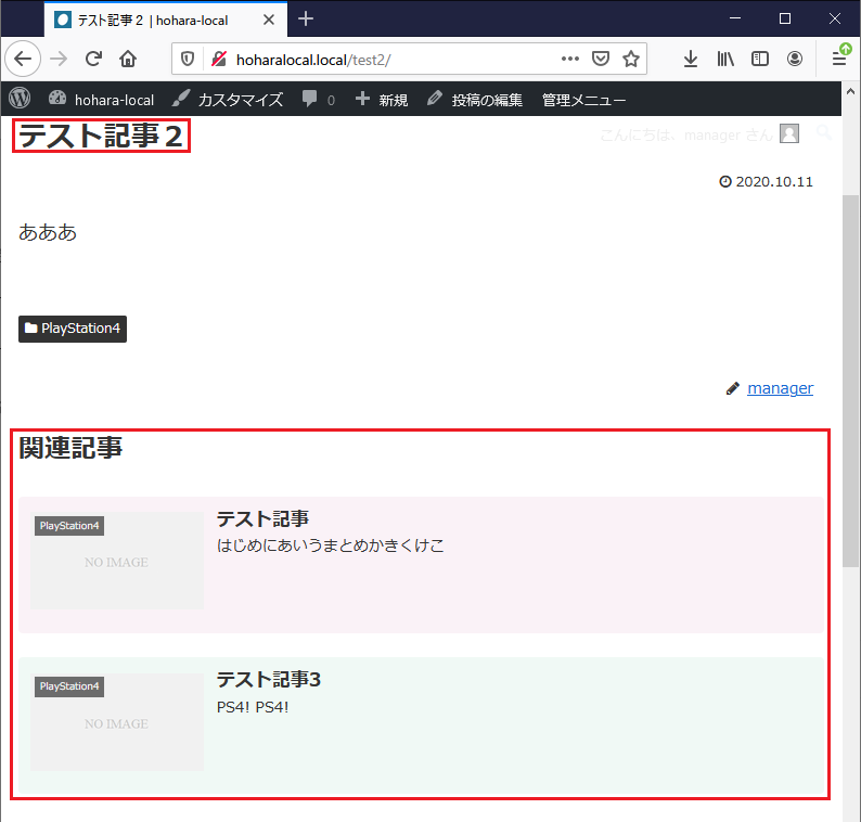 それでは、「PlayStation4」をカテゴリーに持つ記事「テスト記事2」を表示させて、上記のニーズを満たすか否かを確認してみよう。