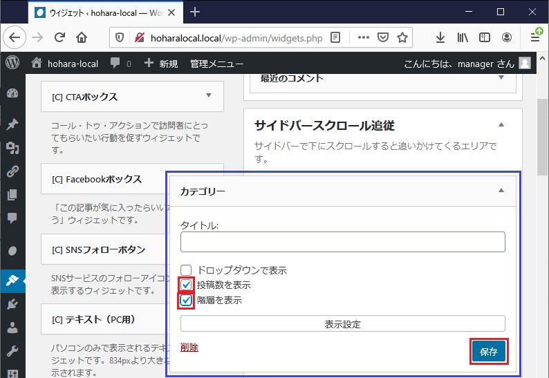 この画面で「階層を表示」にチェックを入れて設定を保存すればカテゴリーが階層表示されるようだ。