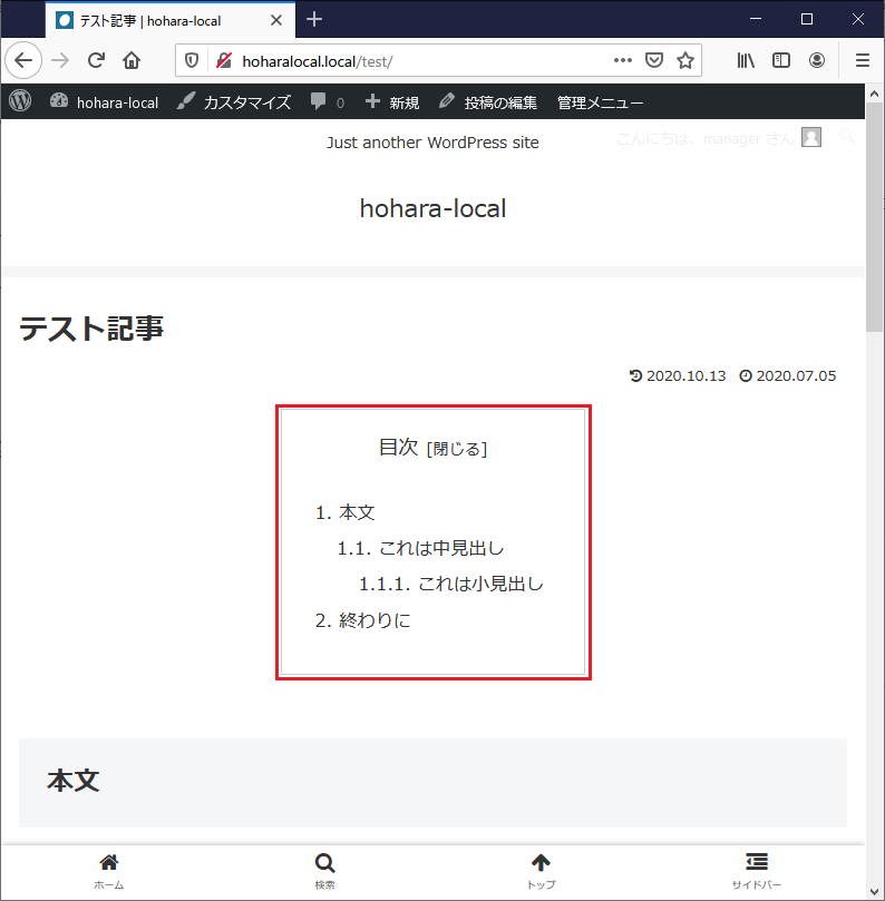 「テスト記事」には以下のような見出しを追加した。