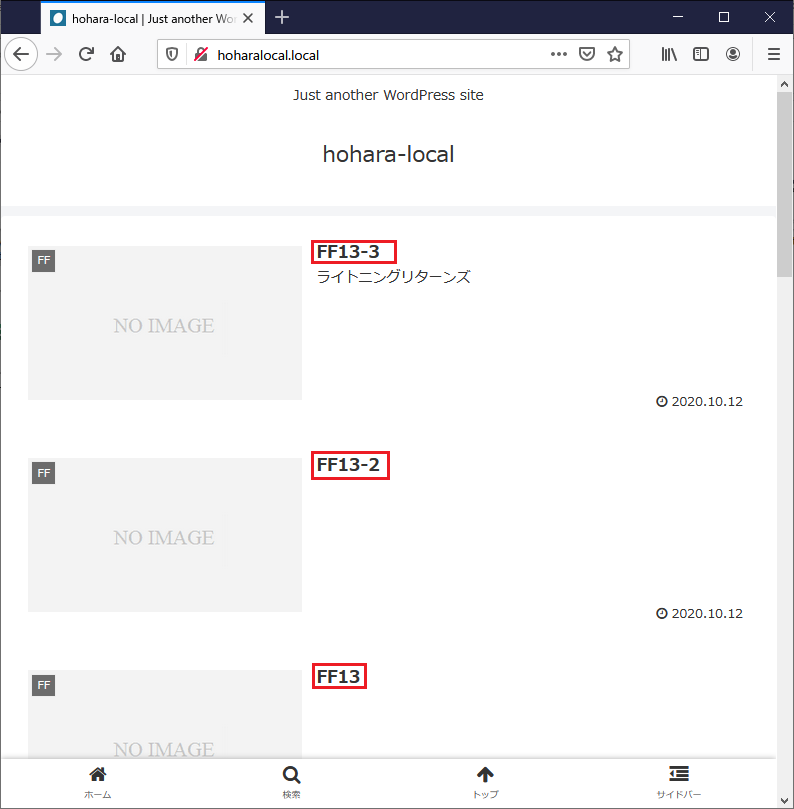 各カテゴリーには、それぞれ新たにダミーの記事を投稿している。
