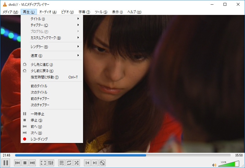 以下は、VLCメディアプレイヤーでDVDを再生中の画面キャプチャーだ。